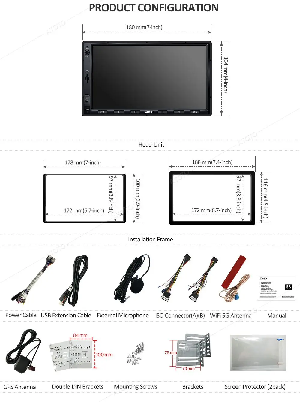 New ATOTO S8 can bring confidence and satisfaction under various operations. There are 3 options available for internet access - WiFi/Bluetooth/USB Tethering connection.(Traditional Android car stereos only have Wi-Fi option).