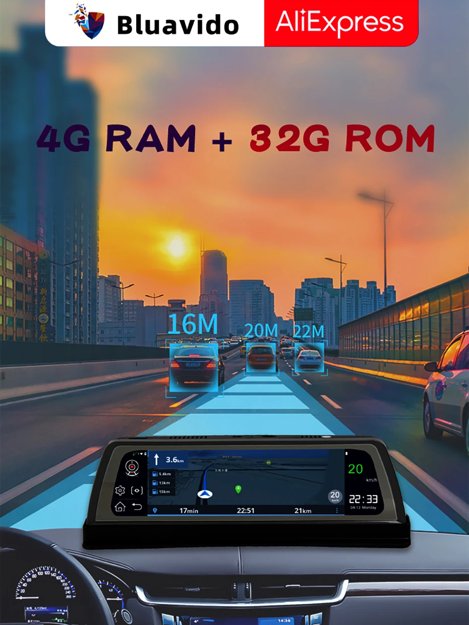 Offer Bluavido 4G ADAS 10" IPS Car Dashboard Video Camera Android 8.1 GPS Navigation 1080P Dual DVR WiFi Remote Surveillance Recorder