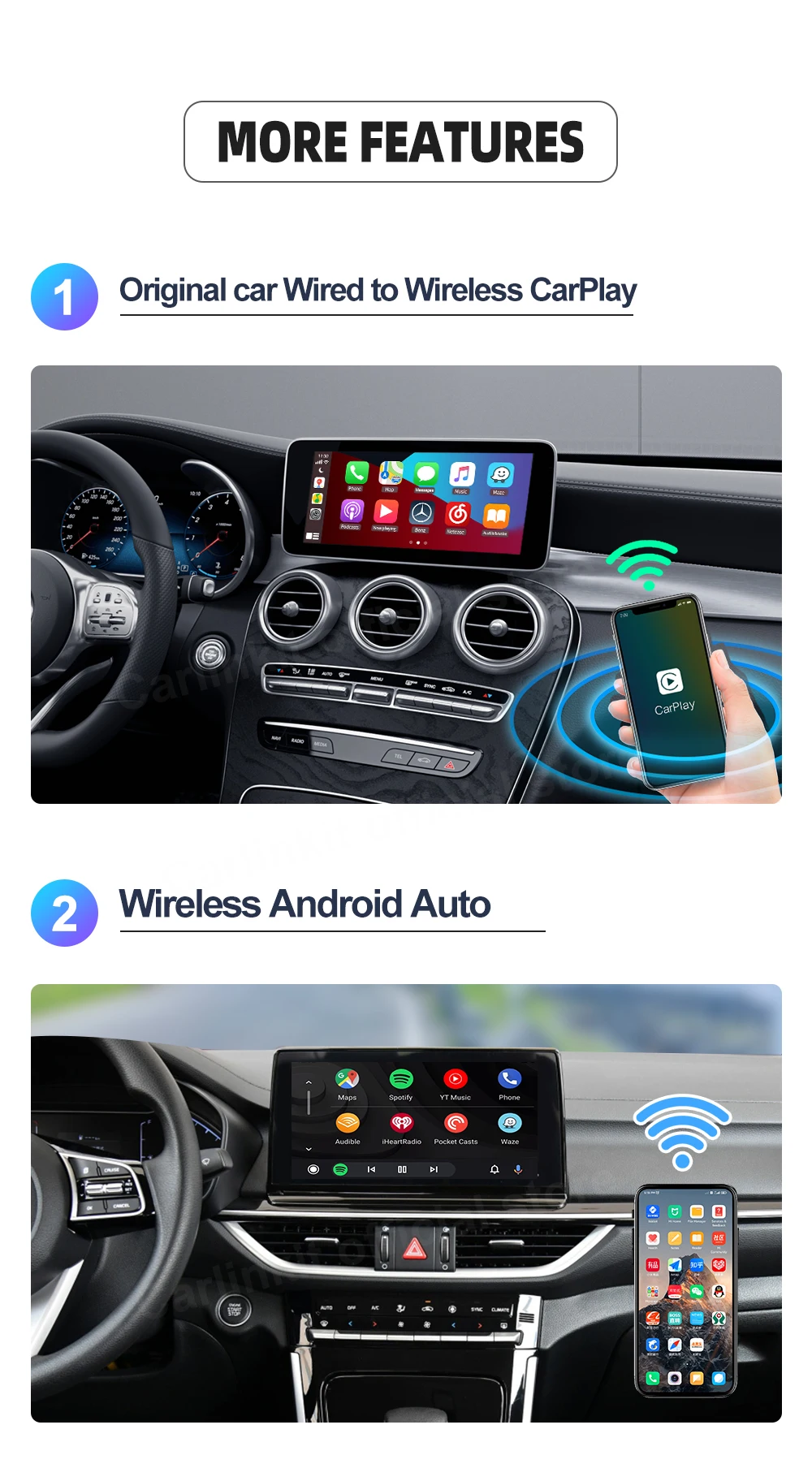★ Wireless CarPlay: Pairing via Bluetooth and transmitting via WIFI.