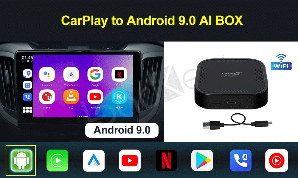 ✔Android 9.0 system, wireless CarPlay ,Wireless Android Auto into one module.