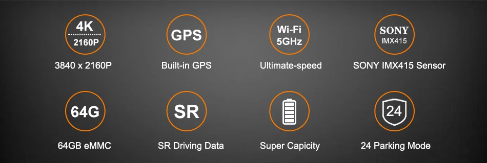 UHD 2160P 4K Dash Cam /Built-in 5GHz WiFi & GPS