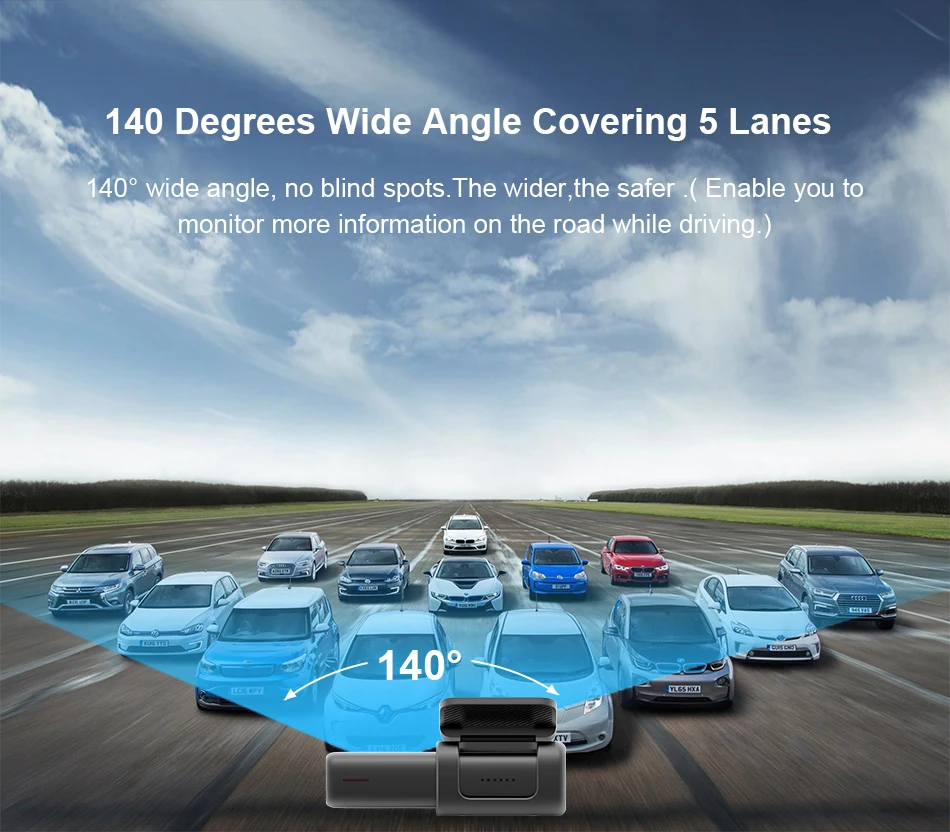140 Degrees Wide Angle Covering 5 Lanes