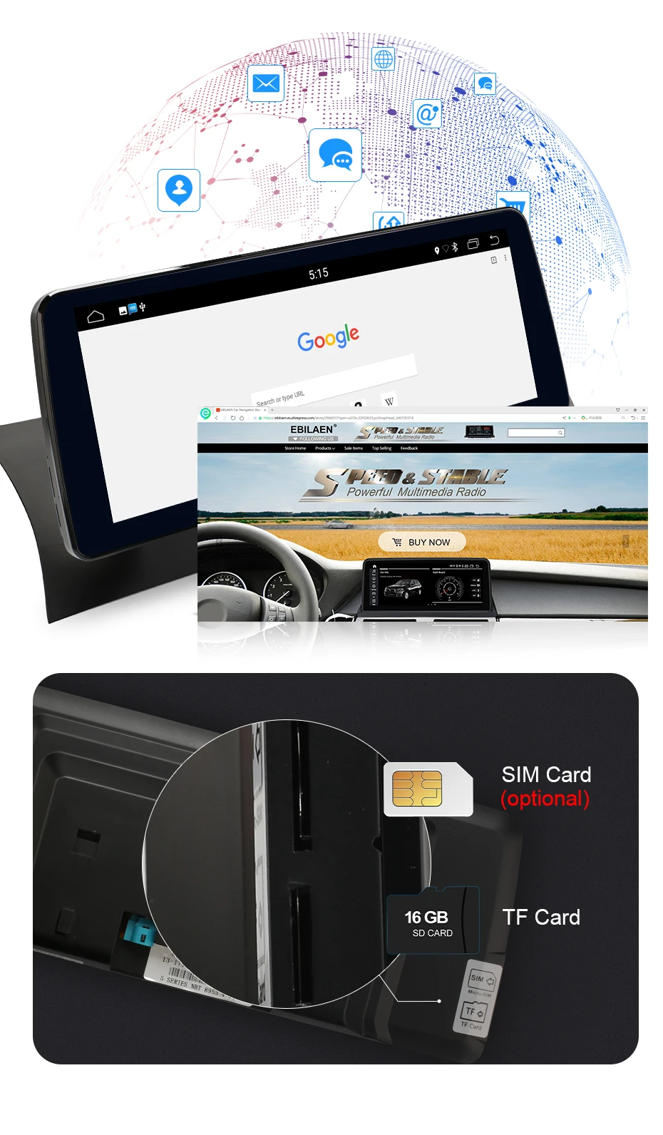 >>>Support LTE 4G and WIFI ,there is 4G sim card slot back of radio .insert sim card and surf internet,Could watch youtube video and listen to musci online while using network. 4G sim card is optional,you could buy sim card in your local market.