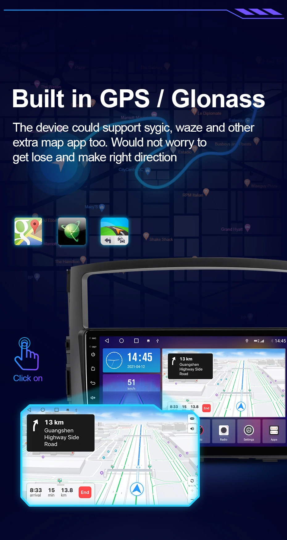 >>>The device could support sygic, waze and other extra map app too. Would not worry to get lose and make right direction