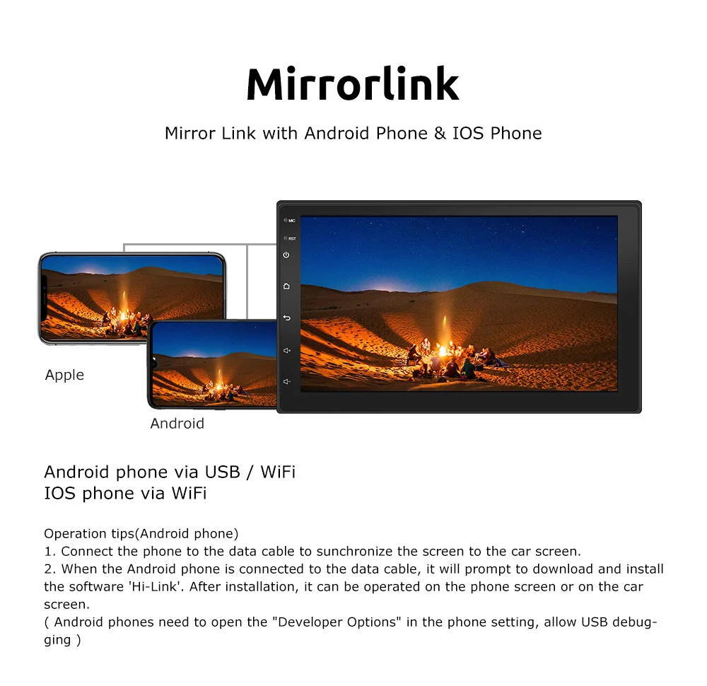 2. When the Android phone is connected to the data cable, it will prompt to download and install the software 'Hi-Link'. After installation, it can be operated on the phone screen or on the car screen.