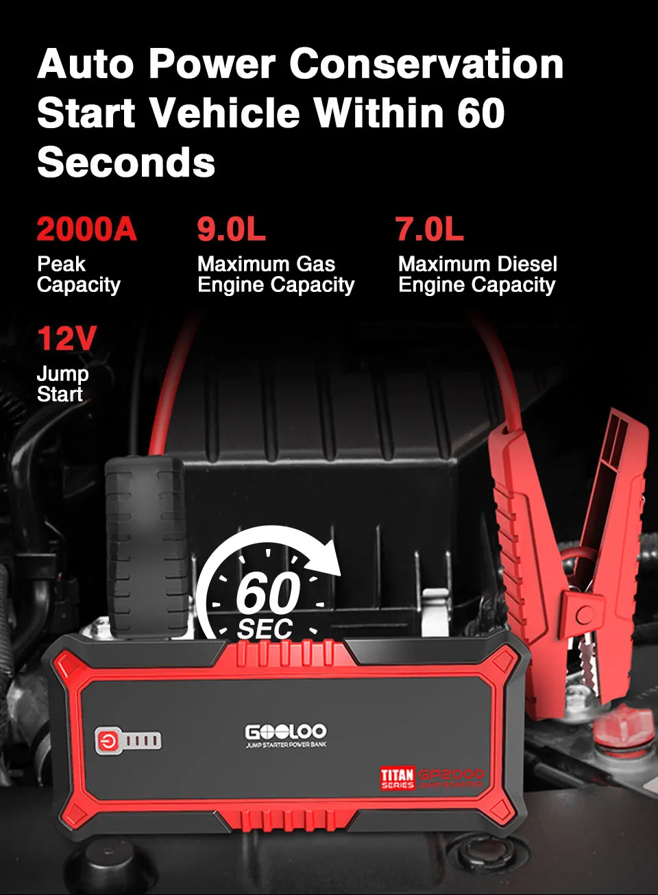 GOOLOO 2000A Auto Jump Starter 12V External Car Powerbank Automatic Motorcyle Battey Booster 19700mAh Portable Vehicle PowerBank